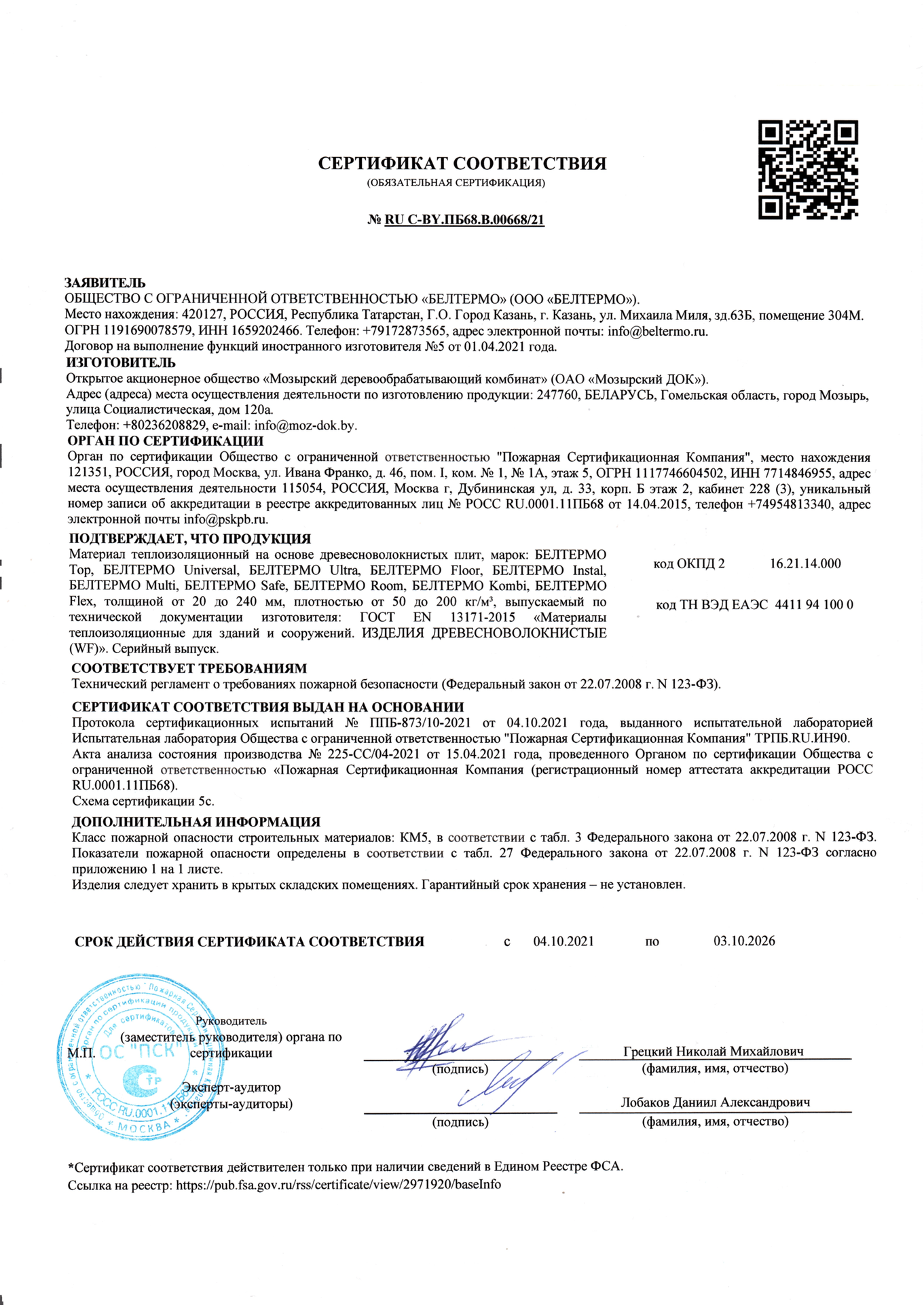 Сертификаты плитных материалов
